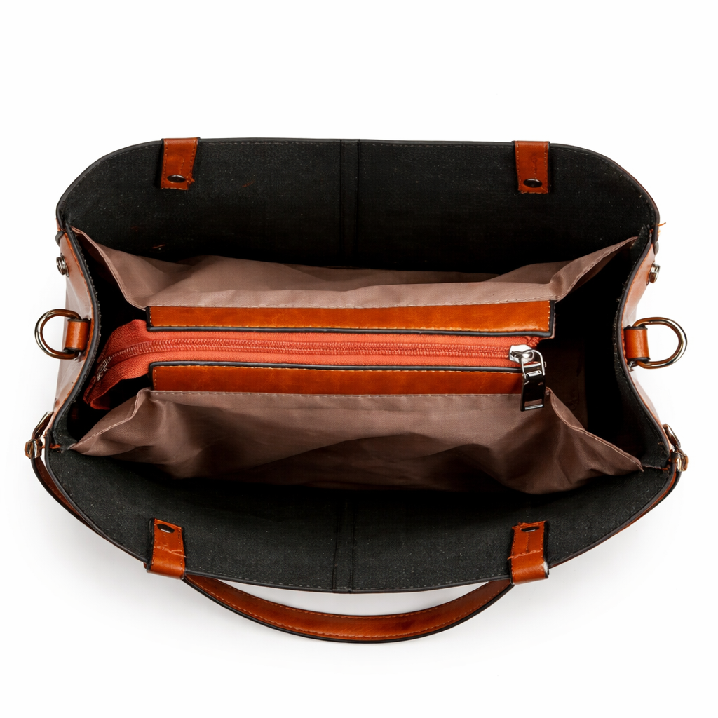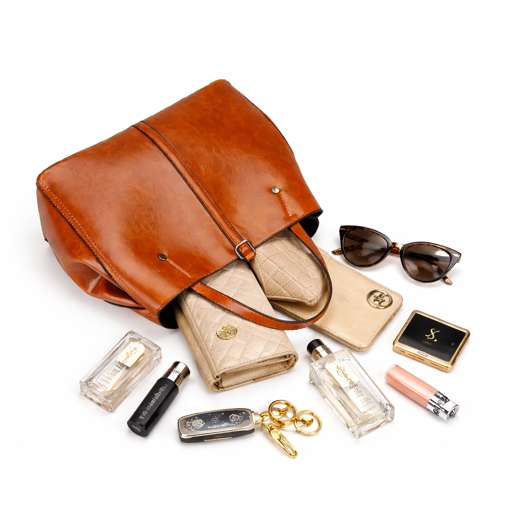 - Spacious yet structured – Holds daily essentials neatly without losing shape or style.