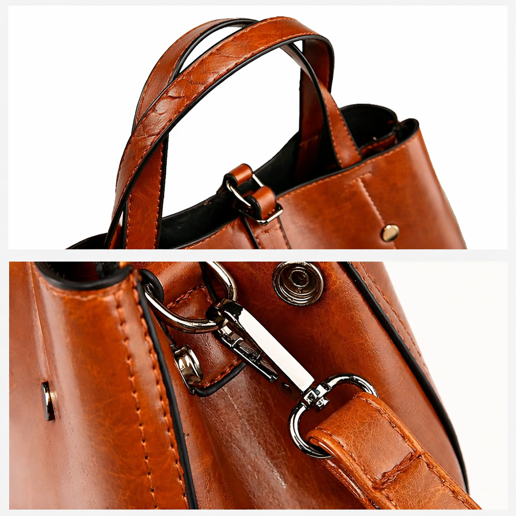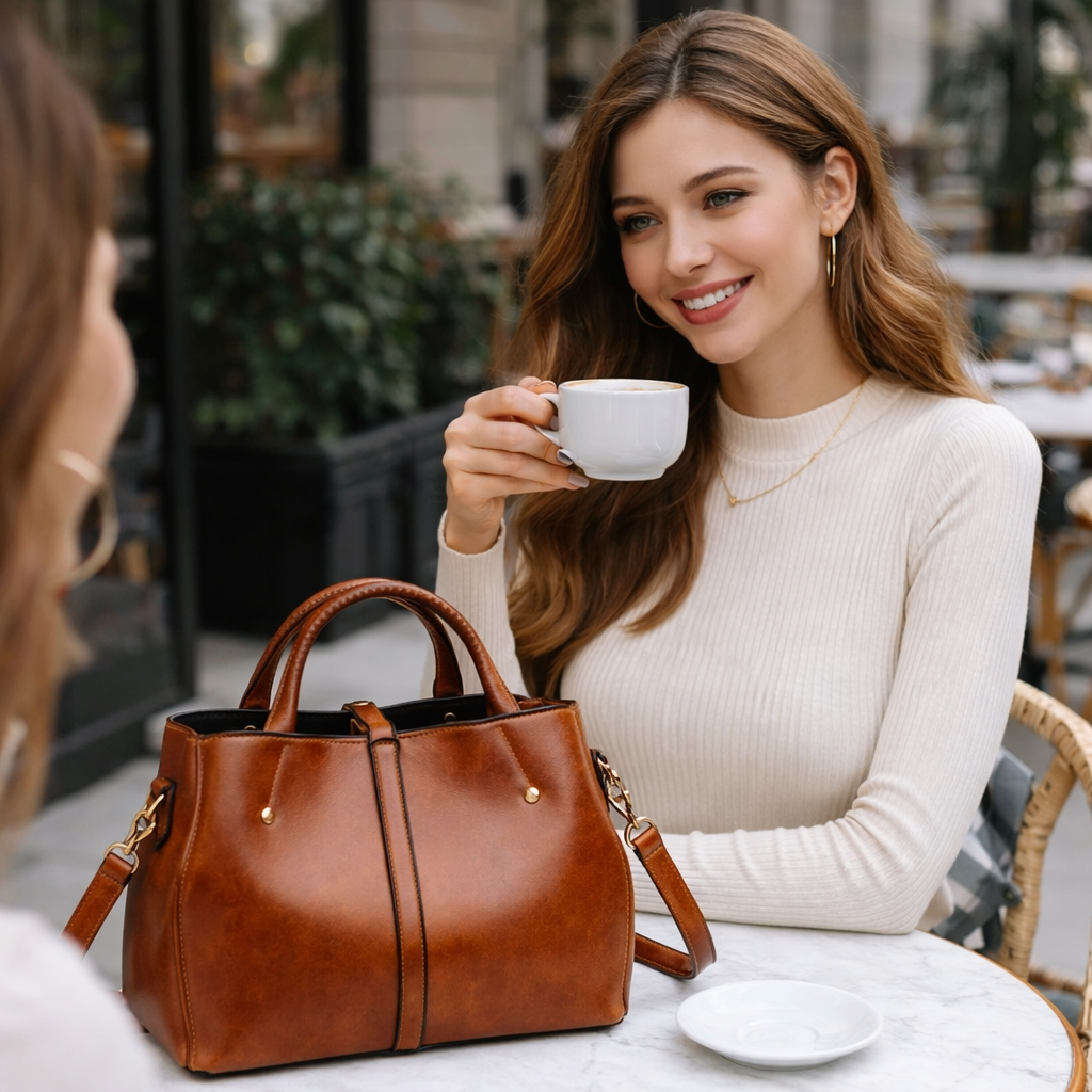 Inside, a thoughtfully organized interior offers generous space for daily essentials without feeling oversized. From morning meetings to evening plans, Elara transitions seamlessly, carried by hand or worn crossbody with the detachable strap.